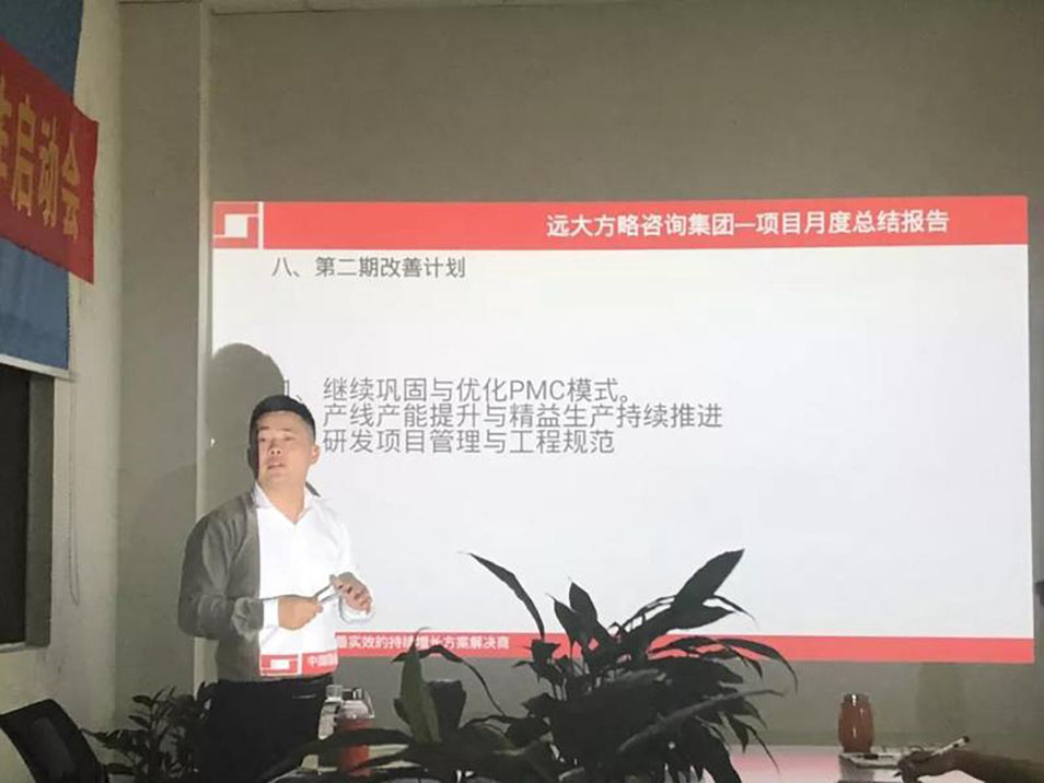 2018年10月底,菲炫科技與遠(yuǎn)大方略續(xù)簽了第二期管理咨詢《精細(xì)化運營》項目,第二期改善主要圍繞公司產(chǎn)能提升、研發(fā)項目管理、工程與品質(zhì)規(guī)范、線材組流線化生產(chǎn)、5S及現(xiàn)場管理、PMC作業(yè)標(biāo)準(zhǔn)化等展開改善。通過改善提高公司的人均產(chǎn)值、降低損耗、提高客戶滿意度、培養(yǎng)和提升內(nèi)部管理團隊。